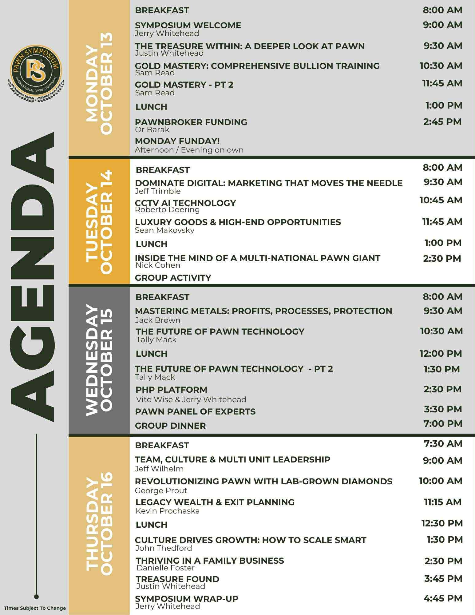 This symposium is designed for established pawn shop owners and industry leaders looking to elevate their business to the next level. Content is advanced and tailored for experienced professionals.